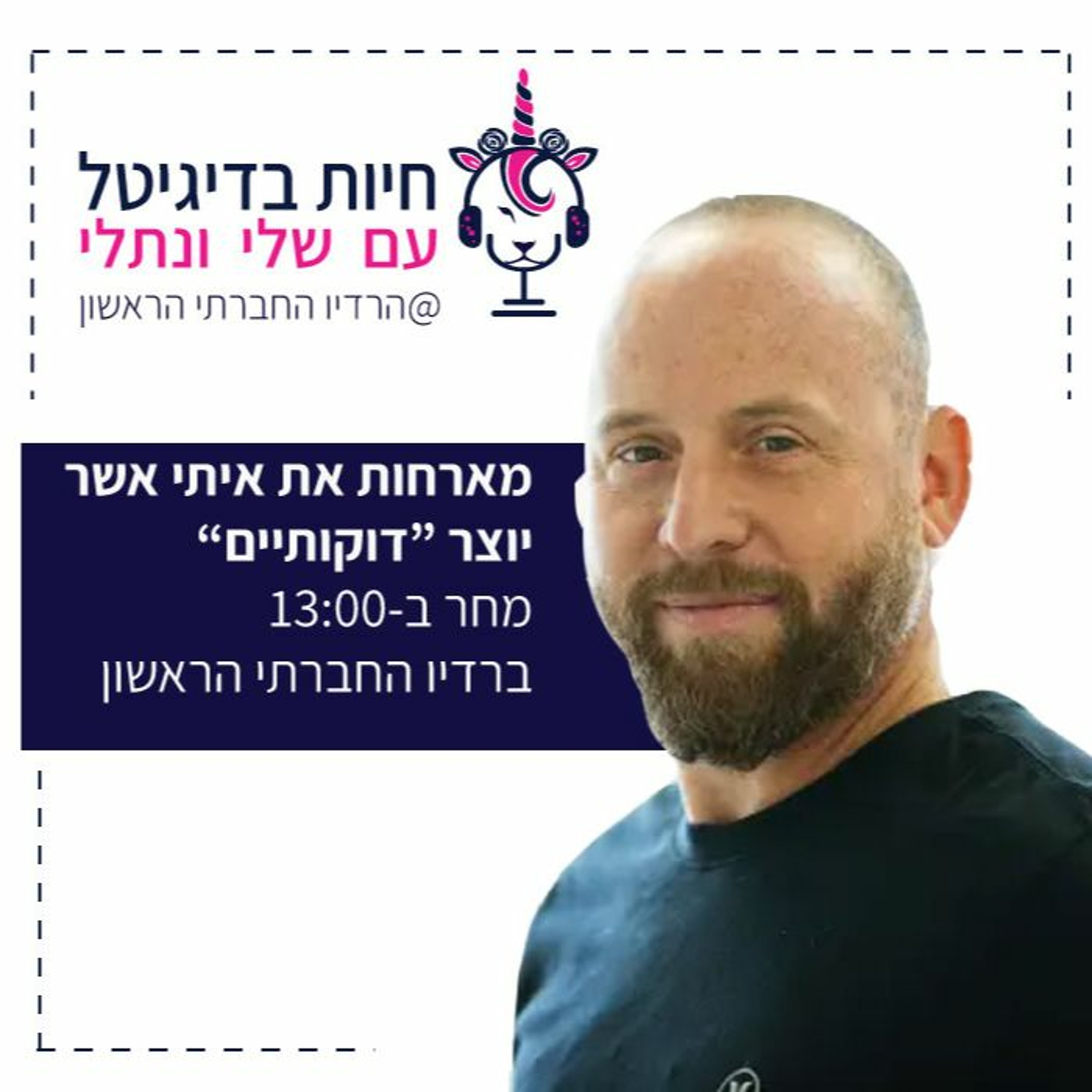 היום בתוכנית מתארח אצלנו העיתונאי, במאי, והיוצר איתי אשר, מי שהביא אלינו את סדרת הרשת המצליחה 'דוקותיים' תוכנית שבועית של כאן תאגיד השידור, תוכנית שמספרת בשתי דקות בלבד סיפורים ישראלים מעניינים יחודיים מרתקים שלא הייתם שומעים לולא הסדרה. התוכנית שלנו היום תעסוק ביצירה בדיגיטל, איך השפיע הדיגיטל על האופן שבו אנחנו צורכים תוכן. על איך שינה הדיגיטל את עבודת העיתונאי החוקר, על יצירת תוכן ויזואלי וגם כמובן את הסיפור האישי של איתי, שעומד בכל הקריטריונים ההוליוודיים לסדרת רשת.
